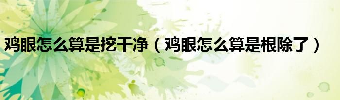 大家好,小新來為大家解答以上的問題。雞眼怎么算是挖干凈,雞眼怎么算是根除了很多人還不知道,現(xiàn)在讓我們一起來看看吧!