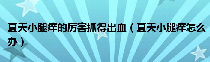 大家好,小新來為大家解答以上的問題。夏天小腿癢的厲害抓得出血,夏天小腿癢怎么辦很多人還不知道,現(xiàn)在讓我們一起來看看吧!