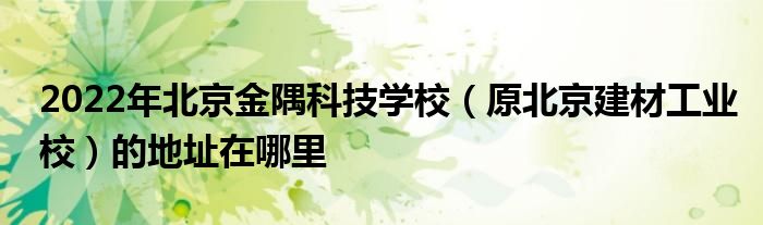 大家好,很多人在詢問2022年北京金隅科技學(xué)校(原北京建材工業(yè)校)的地址在哪里,下面小編給大家整理出來(lái)分享給大家。