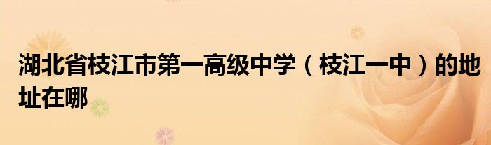 大家好,很多人在詢問湖北省枝江市第一高級(jí)中學(xué)(枝江一中)的地址在哪,下面小編給大家整理出來分享給大家。