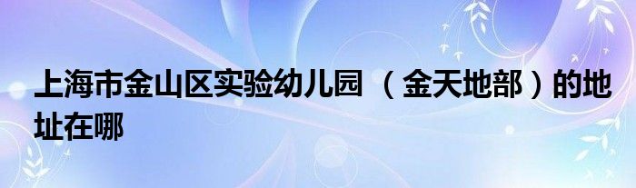大家好,很多人在詢問上海市金山區(qū)實(shí)驗(yàn)幼兒園 (金天地部)的地址在哪,下面小編給大家整理出來分享給大家。