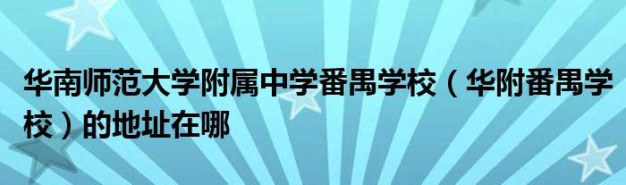 華南師范大學(xué)附屬中學(xué)番禺學(xué)校(華附番禺學(xué)校)的地址解答: