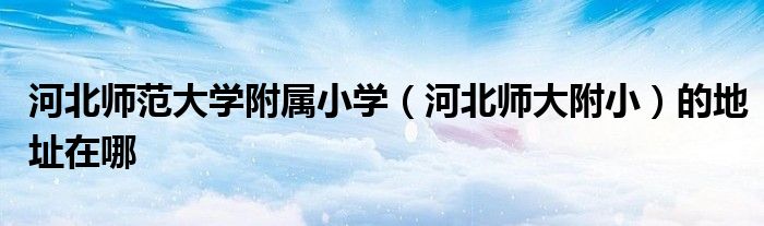大家好,很多人在詢問河北師范大學(xué)附屬小學(xué)(河北師大附?。┑牡刂吩谀?,下面小編給大家整理出來分享給大家。