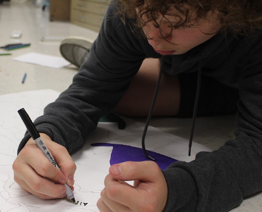 “這門課真的很有趣,”藝術(shù) 2 學(xué)生 Riley Kredo 說。“我們只是談?wù)撐覀冊陧?xiàng)目中所做的任何事情和正在做什么。這真的很有趣,因?yàn)槲覀兌伎梢曰ハ鄮椭?,看看每個(gè)人的表現(xiàn)如何。去年在藝術(shù)領(lǐng)域,我不太喜歡它因?yàn)槲业恼n真的很安靜。而且我并不是一個(gè)真正的藝術(shù)家,但今年我感覺自己的技能好多了,所以我現(xiàn)在真的很享受。”