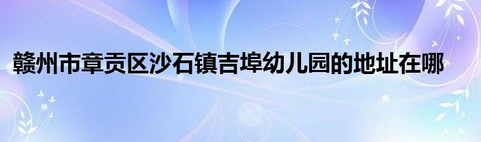 大家好,很多人在詢問贛州市章貢區(qū)沙石鎮(zhèn)吉埠幼兒園的地址在哪,下面小編給大家整理出來分享給大家。