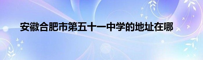 大家好,很多人在詢問安徽合肥市第五十一中學(xué)的地址在哪,下面小編給大家整理出來分享給大家。