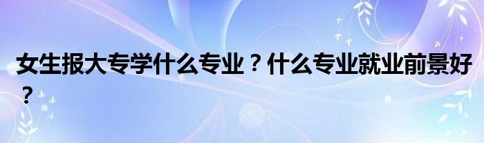 適合女大學(xué)生的專業(yè)有:護(hù)理、英語(yǔ)教育、會(huì)展策劃與管理、空乘、醫(yī)學(xué)美容等。都是比較好就業(yè)的,有很大的發(fā)展空間。