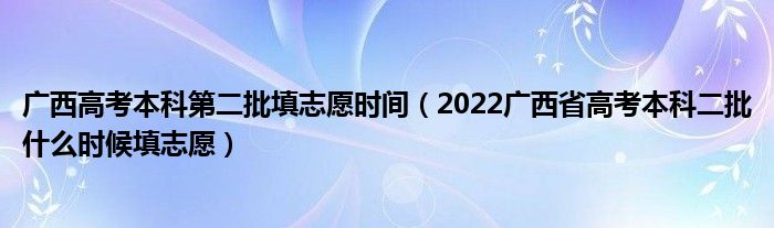 大家好,小高來為大家解答以上問題。廣西高考本科第二批填志愿時間,2022廣西省高考本科二批什么時候填志愿很多人還不知道,現(xiàn)在讓我們一起來看看吧!