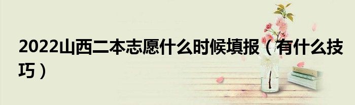 大家好,小高來為大家解答以上問題。2022山西二本志愿什么時(shí)候填報(bào),有什么技巧很多人還不知道,現(xiàn)在讓我們一起來看看吧!