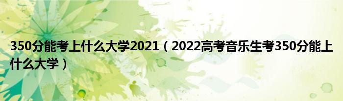 大家好,小高來為大家解答以上問題。350分能考上什么大學(xué)2021,2022高考音樂生考350分能上什么大學(xué)很多人還不知道,現(xiàn)在讓我們一起來看看吧!
