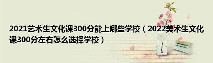 大家好,小高來為大家解答以上問題。2021藝術(shù)生文化課300分能上哪些學(xué)校,2022美術(shù)生文化課300分左右怎么選擇學(xué)校很多人還不知道,現(xiàn)在讓我們一起來看看吧!