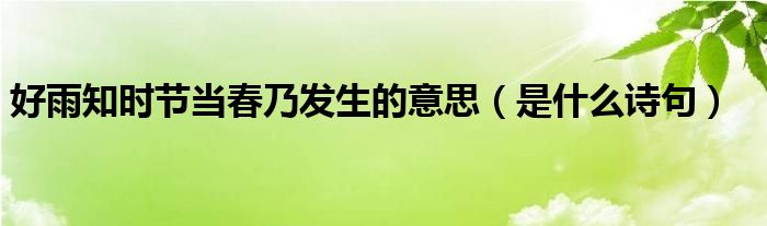 大家好,小高來(lái)為大家解答以上問(wèn)題。好雨知時(shí)節(jié)當(dāng)春乃發(fā)生的意思,是什么詩(shī)句很多人還不知道,現(xiàn)在讓我們一起來(lái)看看吧!