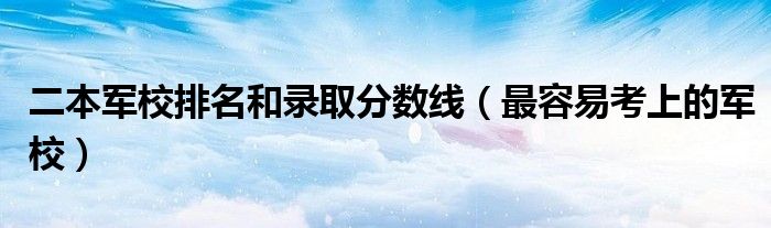 大家好,小高來為大家解答以上問題。二本軍校排名和錄取分?jǐn)?shù)線,最容易考上的軍校很多人還不知道,現(xiàn)在讓我們一起來看看吧!