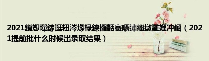 大家好,小高來(lái)為大家解答以上問(wèn)題。2021鎻愬墠鎵逛粈涔堟椂鍊欏嚭褰曞彇緇撴灉娌沖崡,2021提前批什么時(shí)候出錄取結(jié)果很多人還不知道,現(xiàn)在讓我們一起來(lái)看看吧!