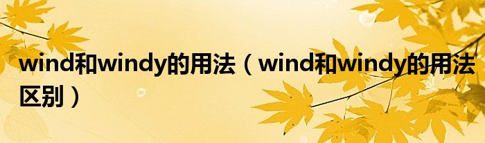 大家好,小高來為大家解答以上問題。wind和windy的用法,wind和windy的用法區(qū)別很多人還不知道,現(xiàn)在讓我們一起來看看吧!