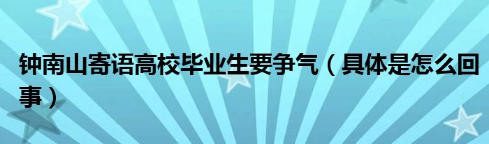 大家好,小高來(lái)為大家解答以上問(wèn)題。鐘南山寄語(yǔ)高校畢業(yè)生要爭(zhēng)氣,具體是怎么回事很多人還不知道,現(xiàn)在讓我們一起來(lái)看看吧!