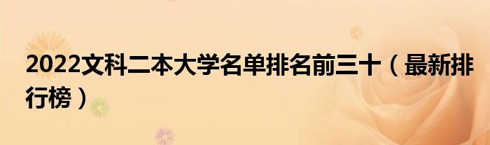 大家好,小高來為大家解答以上問題。2022文科二本大學(xué)名單排名前三十,最新排行榜很多人還不知道,現(xiàn)在讓我們一起來看看吧!