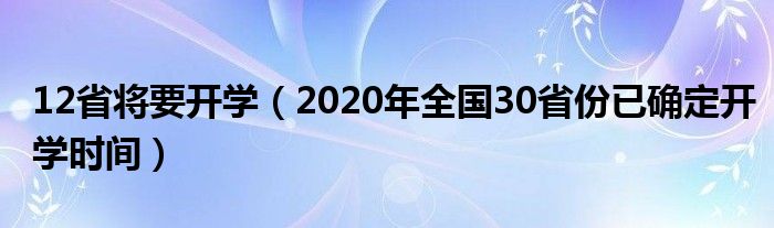 大家好,小高來為大家解答以上問題。12省將要開學,2020年全國30省份已確定開學時間很多人還不知道,現(xiàn)在讓我們一起來看看吧!