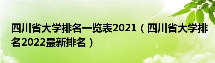 大家好,小高來為大家解答以上問題。四川省大學(xué)排名一覽表2021,四川省大學(xué)排名2022最新排名很多人還不知道,現(xiàn)在讓我們一起來看看吧!