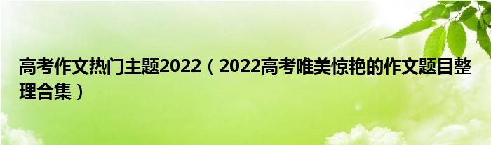 大家好,小高來(lái)為大家解答以上問題。高考作文熱門主題2022,2022高考唯美驚艷的作文題目整理合集很多人還不知道,現(xiàn)在讓我們一起來(lái)看看吧!