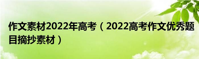 大家好,小高來為大家解答以上問題。作文素材2022年高考,2022高考作文優(yōu)秀題目摘抄素材很多人還不知道,現(xiàn)在讓我們一起來看看吧!