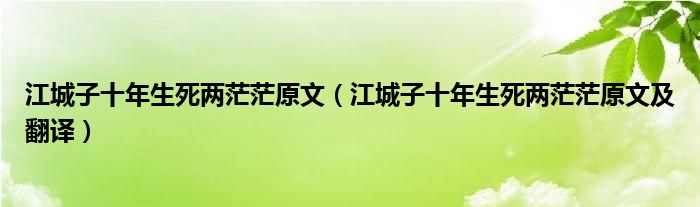 二、《江城子·乙卯正月二十日夜記夢(mèng)》翻譯