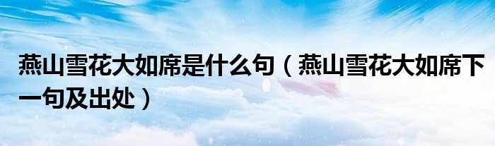 大家好,小高來為大家解答以上問題。燕山雪花大如席是什么句,燕山雪花大如席下一句及出處很多人還不知道,現(xiàn)在讓我們一起來看看吧!