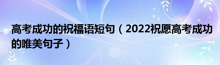大家好,小高來(lái)為大家解答以上問(wèn)題。高考成功的祝福語(yǔ)短句,2022祝愿高考成功的唯美句子很多人還不知道,現(xiàn)在讓我們一起來(lái)看看吧!