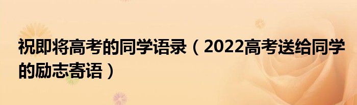 大家好,小高來為大家解答以上問題。祝即將高考的同學(xué)語錄,2022高考送給同學(xué)的勵志寄語很多人還不知道,現(xiàn)在讓我們一起來看看吧!