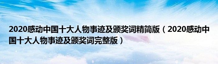 大家好,小高來(lái)為大家解答以上問(wèn)題。2020感動(dòng)中國(guó)十大人物事跡及頒獎(jiǎng)詞精簡(jiǎn)版,2020感動(dòng)中國(guó)十大人物事跡及頒獎(jiǎng)詞完整版很多人還不知道,現(xiàn)在讓我們一起來(lái)看看吧!