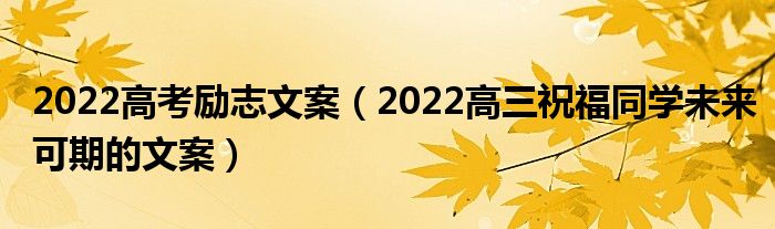 大家好,小高來為大家解答以上問題。2022高考勵志文案,2022高三祝福同學未來可期的文案很多人還不知道,現(xiàn)在讓我們一起來看看吧!