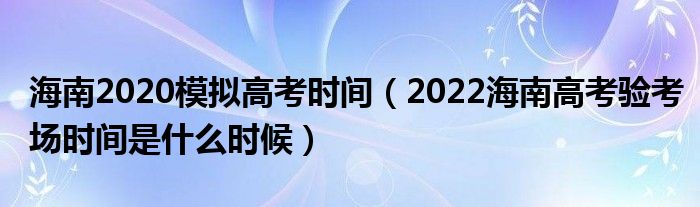 大家好,小高來(lái)為大家解答以上問(wèn)題。海南2020模擬高考時(shí)間,2022海南高考驗(yàn)考場(chǎng)時(shí)間是什么時(shí)候很多人還不知道,現(xiàn)在讓我們一起來(lái)看看吧!