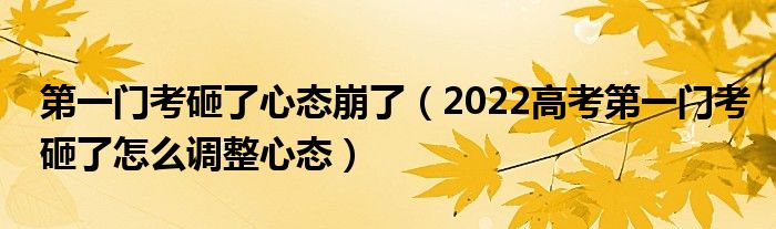 大家好,小高來為大家解答以上問題。第一門考砸了心態(tài)崩了,2022高考第一門考砸了怎么調(diào)整心態(tài)很多人還不知道,現(xiàn)在讓我們一起來看看吧!