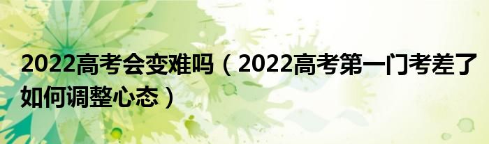大家好,小高來為大家解答以上問題。2022高考會變難嗎,2022高考第一門考差了如何調(diào)整心態(tài)很多人還不知道,現(xiàn)在讓我們一起來看看吧!