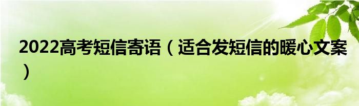 大家好,小高來為大家解答以上問題。2022高考短信寄語,適合發(fā)短信的暖心文案很多人還不知道,現(xiàn)在讓我們一起來看看吧!
