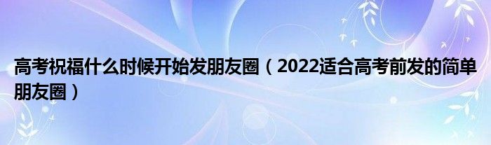 大家好,小高來(lái)為大家解答以上問(wèn)題。高考祝福什么時(shí)候開(kāi)始發(fā)朋友圈,2022適合高考前發(fā)的簡(jiǎn)單朋友圈很多人還不知道,現(xiàn)在讓我們一起來(lái)看看吧!