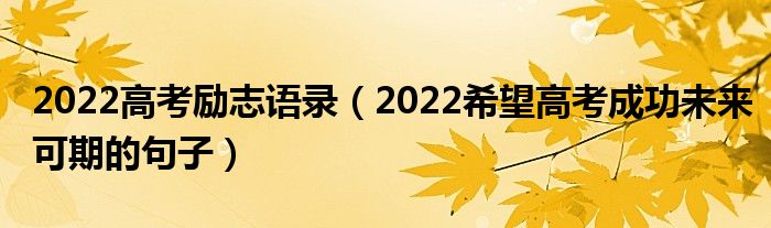 大家好,小高來為大家解答以上問題。2022高考勵志語錄,2022希望高考成功未來可期的句子很多人還不知道,現(xiàn)在讓我們一起來看看吧!