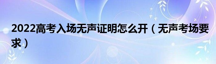 大家好,小高來(lái)為大家解答以上問(wèn)題。2022高考入場(chǎng)無(wú)聲證明怎么開(kāi),無(wú)聲考場(chǎng)要求很多人還不知道,現(xiàn)在讓我們一起來(lái)看看吧!