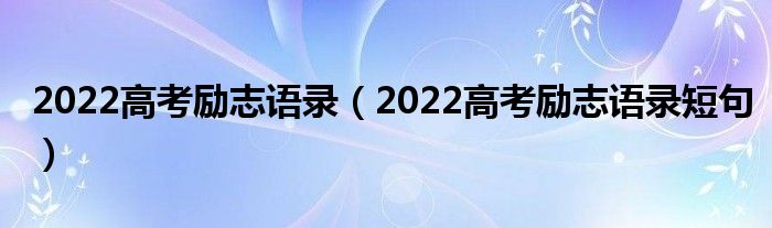 大家好,小高來為大家解答以上問題。2022高考勵(lì)志語錄,2022高考勵(lì)志語錄短句很多人還不知道,現(xiàn)在讓我們一起來看看吧!
