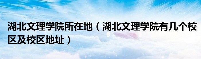 大家好,小高來為大家解答以上問題。湖北文理學(xué)院所在地,湖北文理學(xué)院有幾個校區(qū)及校區(qū)地址很多人還不知道,現(xiàn)在讓我們一起來看看吧!