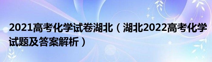 大家好,小高來為大家解答以上問題。2021高考化學(xué)試卷湖北,湖北2022高考化學(xué)試題及答案解析很多人還不知道,現(xiàn)在讓我們一起來看看吧!