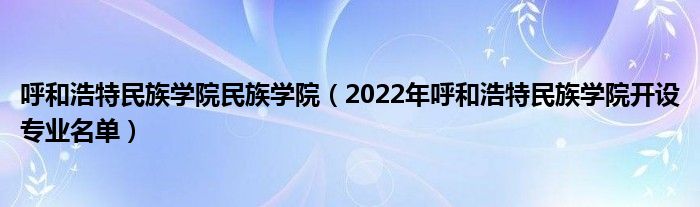 大家好,小高來為大家解答以上問題。呼和浩特民族學(xué)院民族學(xué)院,2022年呼和浩特民族學(xué)院開設(shè)專業(yè)名單很多人還不知道,現(xiàn)在讓我們一起來看看吧!