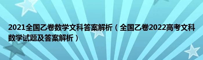 大家好,小高來為大家解答以上問題。2021全國乙卷數(shù)學(xué)文科答案解析,全國乙卷2022高考文科數(shù)學(xué)試題及答案解析很多人還不知道,現(xiàn)在讓我們一起來看看吧!