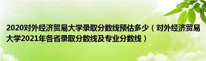 大家好,小高來為大家解答以上問題。2020對外經(jīng)濟貿(mào)易大學(xué)錄取分?jǐn)?shù)線預(yù)估多少,對外經(jīng)濟貿(mào)易大學(xué)2021年各省錄取分?jǐn)?shù)線及專業(yè)分?jǐn)?shù)線很多人還不知道,現(xiàn)在讓我們一起來看看吧!
