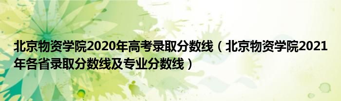 大家好,小高來為大家解答以上問題。北京物資學(xué)院2020年高考錄取分?jǐn)?shù)線,北京物資學(xué)院2021年各省錄取分?jǐn)?shù)線及專業(yè)分?jǐn)?shù)線很多人還不知道,現(xiàn)在讓我們一起來看看吧!