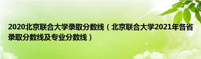 大家好,小高來為大家解答以上問題。2020北京聯(lián)合大學(xué)錄取分?jǐn)?shù)線,北京聯(lián)合大學(xué)2021年各省錄取分?jǐn)?shù)線及專業(yè)分?jǐn)?shù)線很多人還不知道,現(xiàn)在讓我們一起來看看吧!