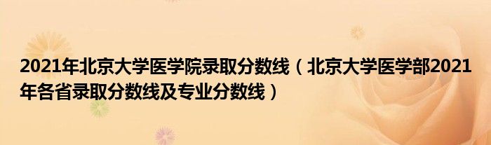 大家好,小高來為大家解答以上問題。2021年北京大學(xué)醫(yī)學(xué)院錄取分?jǐn)?shù)線,北京大學(xué)醫(yī)學(xué)部2021年各省錄取分?jǐn)?shù)線及專業(yè)分?jǐn)?shù)線很多人還不知道,現(xiàn)在讓我們一起來看看吧!
