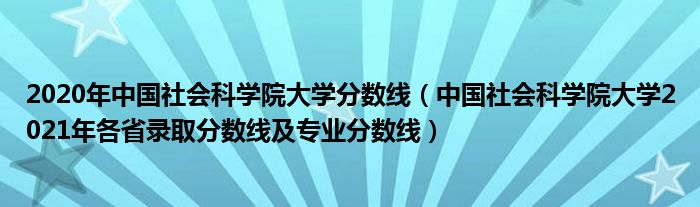 大家好,小高來為大家解答以上問題。2020年中國社會科學(xué)院大學(xué)分?jǐn)?shù)線,中國社會科學(xué)院大學(xué)2021年各省錄取分?jǐn)?shù)線及專業(yè)分?jǐn)?shù)線很多人還不知道,現(xiàn)在讓我們一起來看看吧!