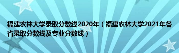 大家好,小高來為大家解答以上問題。福建農(nóng)林大學(xué)錄取分?jǐn)?shù)線2020年,福建農(nóng)林大學(xué)2021年各省錄取分?jǐn)?shù)線及專業(yè)分?jǐn)?shù)線很多人還不知道,現(xiàn)在讓我們一起來看看吧!