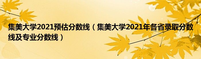 大家好,小高來為大家解答以上問題。集美大學(xué)2021預(yù)估分數(shù)線,集美大學(xué)2021年各省錄取分數(shù)線及專業(yè)分數(shù)線很多人還不知道,現(xiàn)在讓我們一起來看看吧!